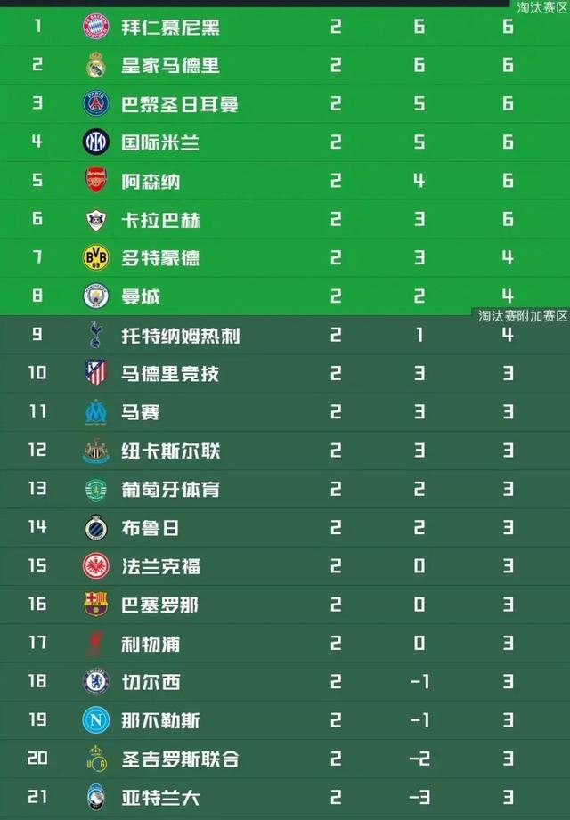 欧冠最新积分榜如下!曼城和多特蒙德、热刺同积4分,排名第八位!